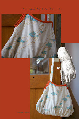 (tissu japonais offert par une très bonne âme, doublé de popeline orange qui claque , patron Mme Alfred )